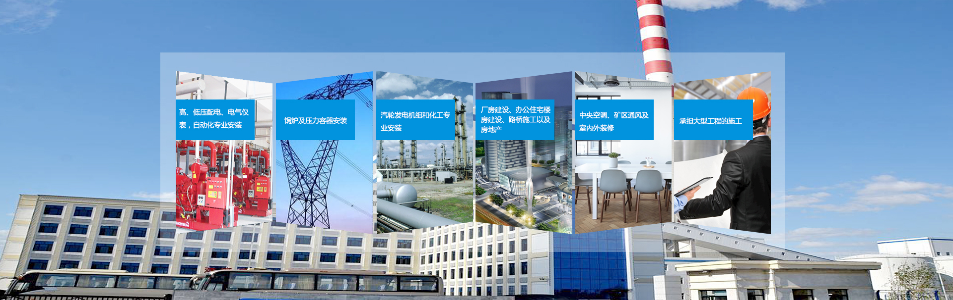 公司以工業(yè)、電力、化工安裝為主 下設六個大項目部及兩個獨立子公司
